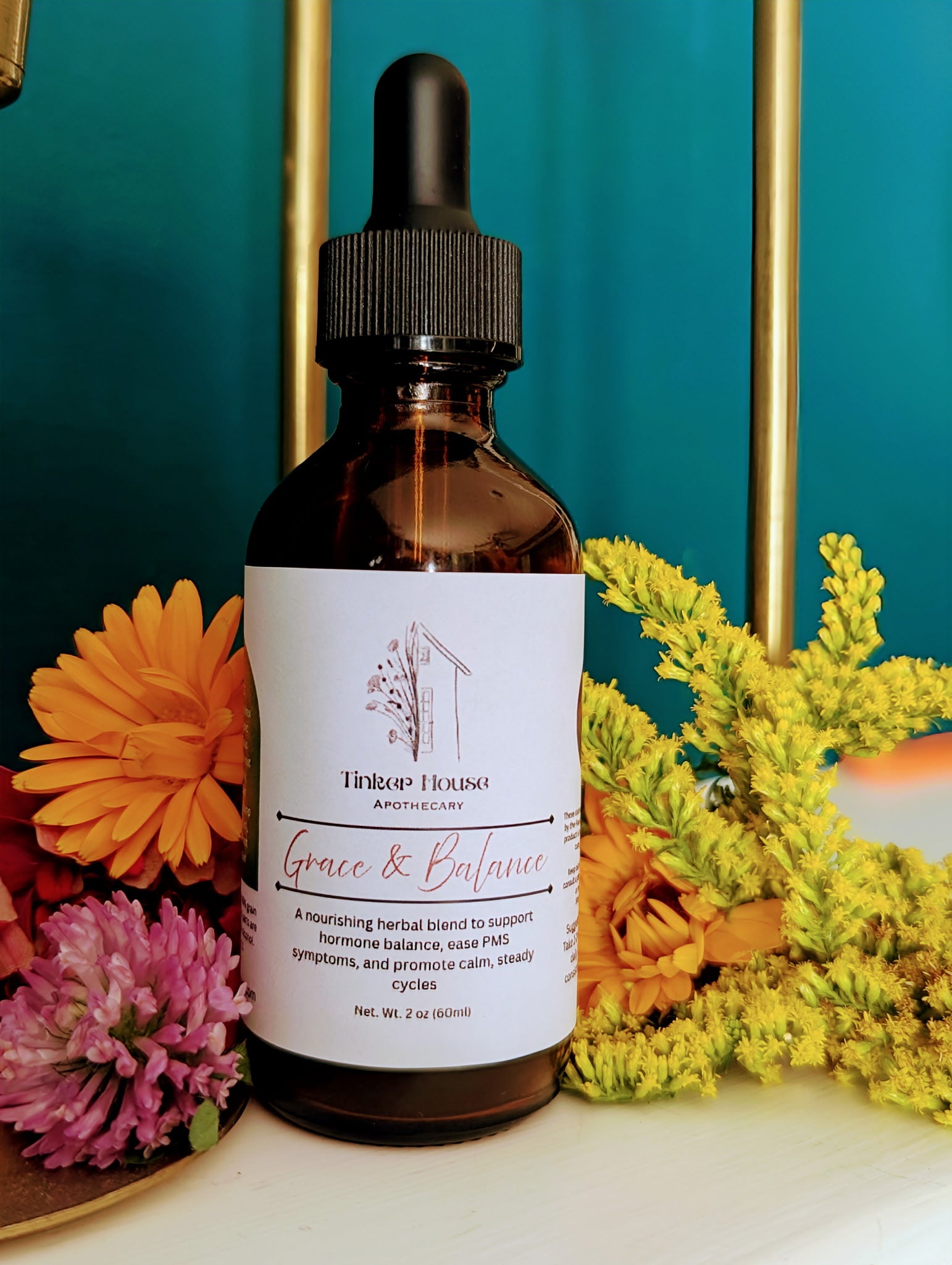 A nourishing herbal blend to support hormone balance, ease PMS symptoms, and promote calm, steady cycles. I would highly recommend pairing this tincture with the Graceful Rhythm tea blend to receive the full spectrum benefits of these powerful plants!