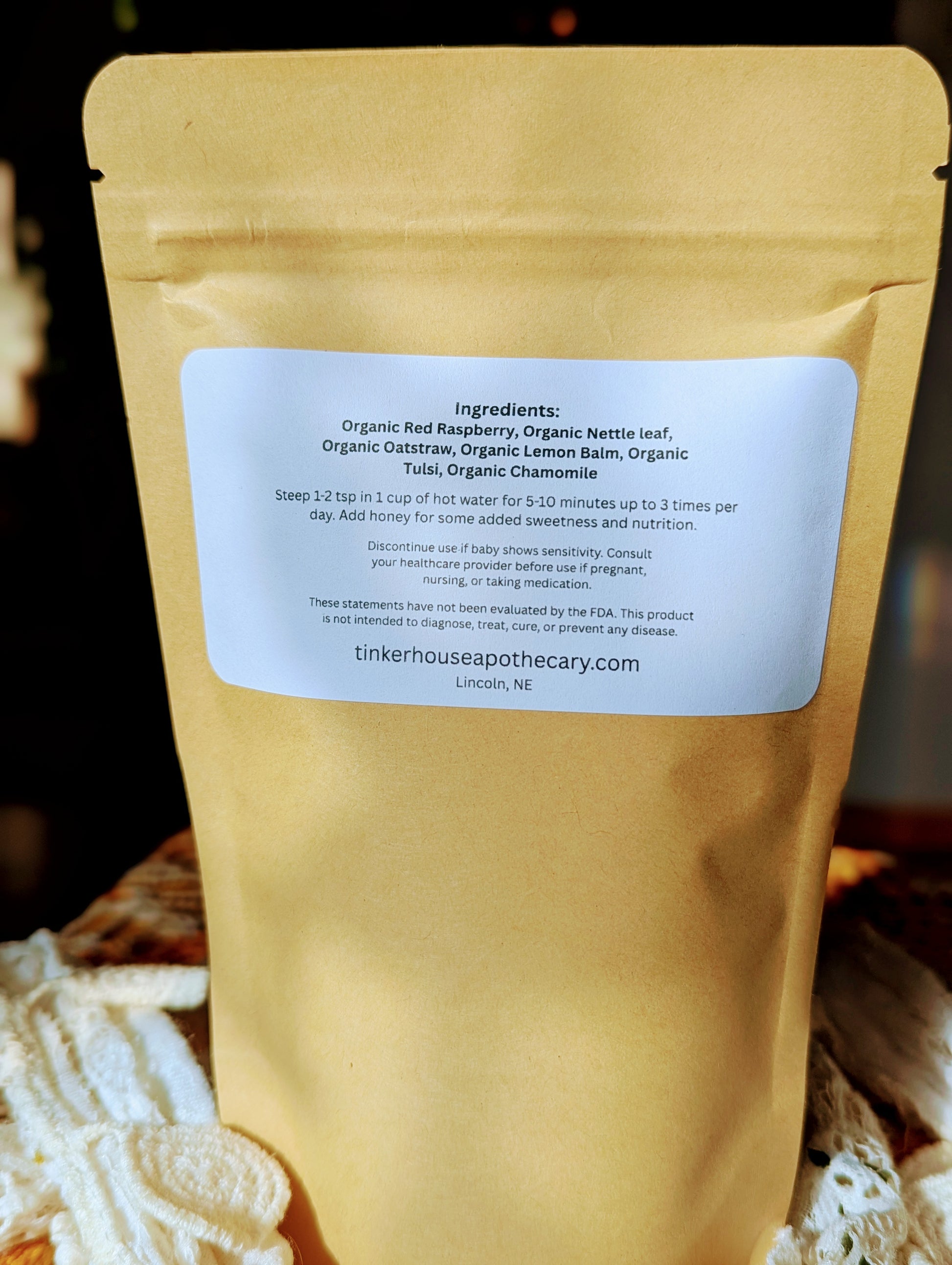 A mineral-rich tonic that supports uterine recovery and hormone balance. Raspberry leaf restores strength, replenishes nutrients, and gently tones the body after birth.