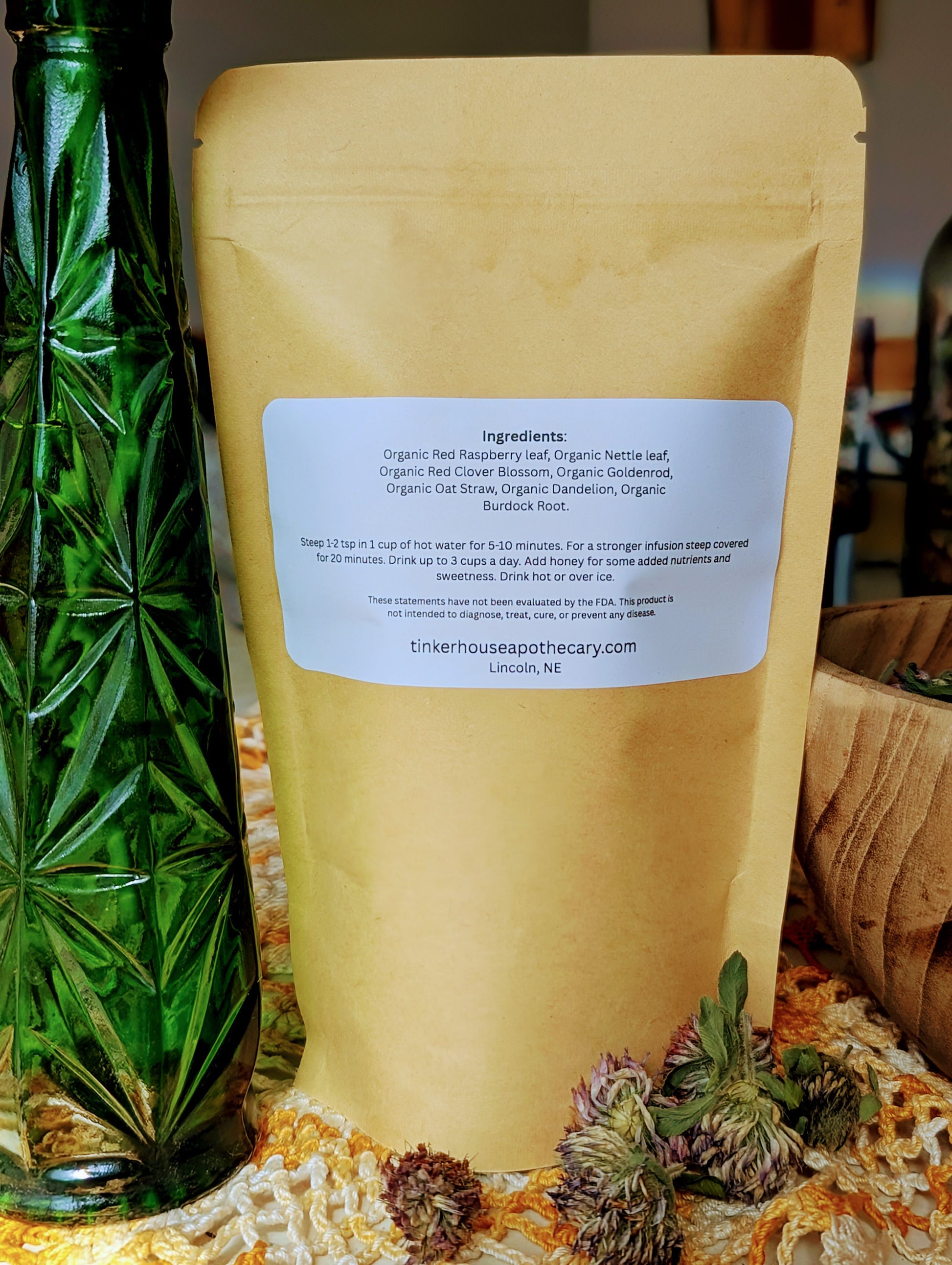 Goldenrod: Goldenrod provides vitamins A and C alongside minerals such as calcium, magnesium, and silica. Known for its affinity with the urinary system, it gently encourages fluid balance and supports natural detoxification. This is also grown right here on our urban homestead.